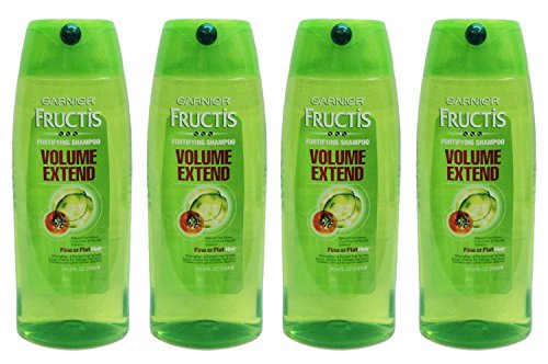 Lose volume as hair gets weighed down throughout the day. Garnier fructis volume extend shampoo's ultra-light formula, with natural fruit fibers, papaya and cucumber extracts, strengthens while it thickens hair. The formula with invisible fruit fibers wraps each strand to thicken hair, lifting at the roots and strengthening along the lengths to extend volume for long lasting fullness. Garnier's eco-fructis bottle contains 30% recycled plastic. Recycle this bottle to help decrease landfill waste: sign up at garnierusa.com/green for more information.Feature