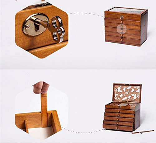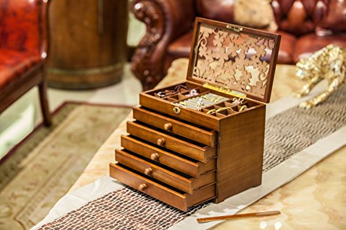 -. Title : L.E.G.Oyo 7198B Clover Carved 6 Layer Wooden/Real Wood Jewelry Box and Lock Archaize