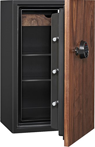 -. Feature : Interior: 26.63"H x 15"W x 13"D . Commercial Fire Rating of Class 350 1.5-Hour (90 minutes). Digital Protection: Fire Rated MTC Class B 60 minutes for CDs, DVDs, USB Drives, and Memory Sticks. / Smooth, genuine walnut door and drawer panels with a smoke and heat-resistant frame structure. Includes 1 adjustable shelf, 1 adjustable drawer, and key hanger on inside of door. / FingerP.R.Int Lock that can also be used as a Digital Lock programmable with 4-16 digits. A bolt-down kit is included so that this safe can be bolted to the floor for added security. / Impact Rated: The impact test includes dropping the safe 30 feet onto concrete rubble, then reheating in the fire. This simulates actual conditions in a fire when the floor gives out. / Warranty: 3-Year Parts and Labor on the safe and lock. Lifetime After-a-Fire Replacement Warranty: If your safe is ever in a fire it will be replaced at no charge.