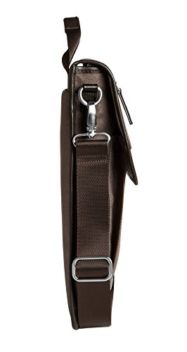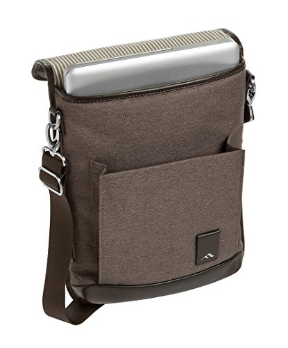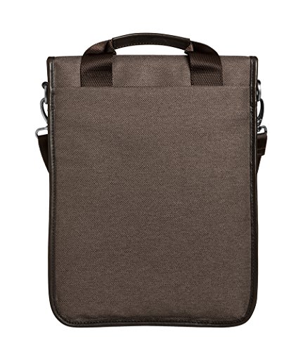 -. Feature : Soft, durable two-tone twill exterior / Genuine Napa leather trim / Padded tablet and 13" laptop pockets / Quick access phone pocket / Front organization panel with magnetic closure
