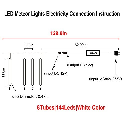 High quality -- Made from 144 of individual LEDs, Safe Guaranteed, these LED Tube Meteor Shower Rain Lights strand have over 60000 hours of life span