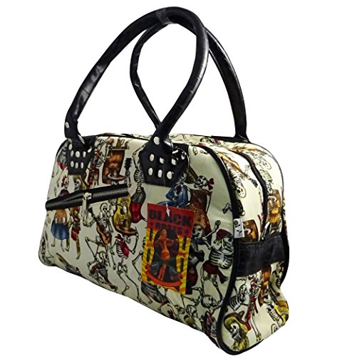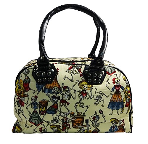 Fashionable Canvas Shoulder Bag or Hand Bag with Skull Calavera purse