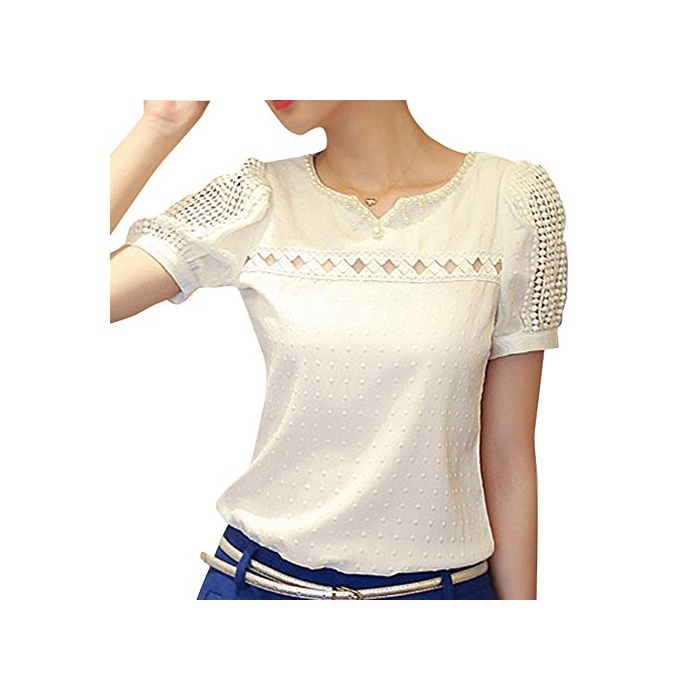 Vlent 봄과 여름 블라우스 V넥 레이디스 시폰 블라우스 큰 사이즈 무지 패션 《밧킨구샤츠》 (L)