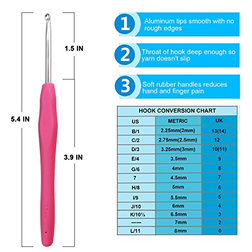 - Easy to use:This set of Crochet hooks' needles are made from aluminum which has been polished for a smooth finish to avoid any rough edges. Great for Beginners, Intermediate or more Experienced Crocheters