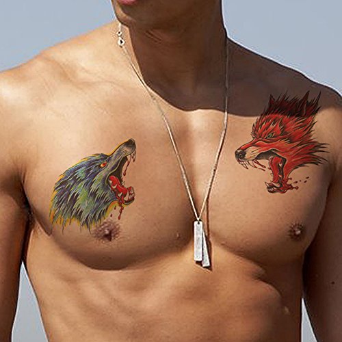 TAFLY Men's Chest Tattoos Wolf Transfer Temporary Tattoo for Men 3 Sheets