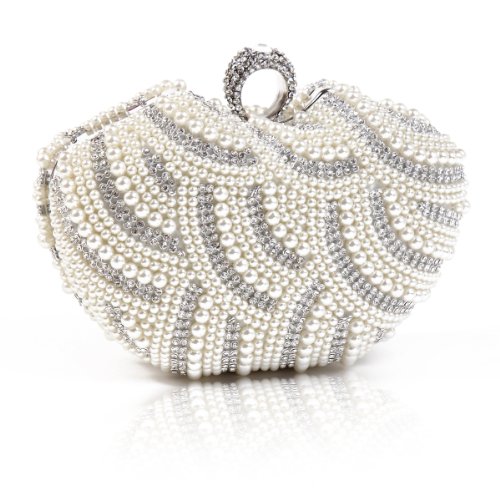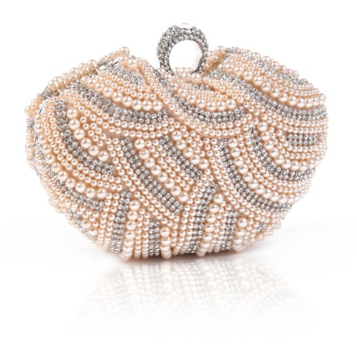 Damara Womens Luxury Special Crystals Beaded Pearl Clutch Bag,Champagne