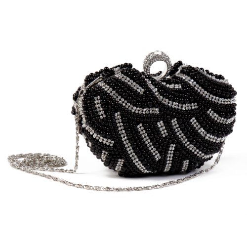 This columnar pearl embroidery clutch has a decorative boarder along the top of the clutch that exudes high class fashion. It flap front has a clasp closure and opens to a functional bag for personal items, cash or cards. The clutch can convert into additional styles with its strap styles: A Short Chain Handbag - allow you to keep your purse close to your body without holding it in your hand -Short Strap Drop: 15.74" (Approx) and A Long Shoulder Chain - This hands free option lets your bag hang low or across your chest - Length Strap Drop: 47.24"(Approx).