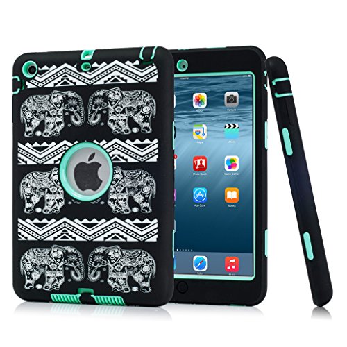 HOcase iPad mini Case - Double Layer Rugged Shockproof Hard Rubber Protective Case Cover for iPad mini, iPad mini 2, iPad mini 3 - Elephant+Mint Green