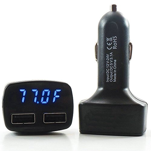-. Title : Car Charger - JEBSENS - 4in1 3.1A Fast Dual USB Car Phone Charger, Voltage Meter Monitor USB Car Charger for Smartphone with Blue LED Voltage Amps and Internal Temperature(Fahrenheit) Display - 15W