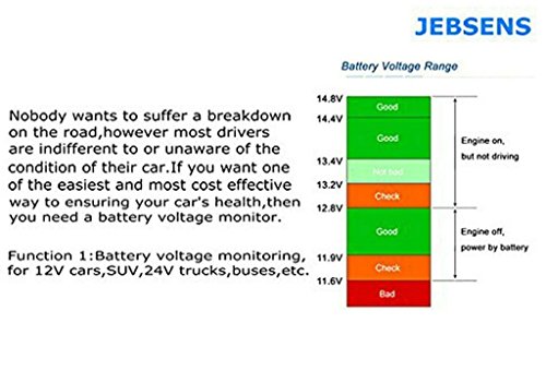-. Feature : FAST DUAL USB CHARGING PORTS - Combined 3.1 amps; 15W; uses smart technology to ensure each device pulls the right amperage. Dual USB car charger is powered by the vehicle's cigarette lighter. / OVER-CHARGE PROTECTION - The mini USB car charger is auto power off when input/output is greater than safety current, protects against over-heat, over-current and over-charging / LED DISPLAY - LED digital luminescence tubes; Display cycles between internal temperature (Fahrenheit), device's charging current, and the voltage of the vehicle's car battery. (Note: When using the device to charge, it display the charger's temperature instead of the internal temperature of your car. ) The LEDs are bright enough to read the display without being a distraction while driving. New updated version (ASIN B01N00I4TM) with LED Voltage & Amps Display only. / SPECIFICATIONS - Input: DC 12V - 24V, Output: DC 5V/3.1A, 15 W, Conversion efficiency 95%, Measuring range: Voltage 5V-25V, Current 0 - 3.1A, Temperature -4⁰ to 176⁰ F / PACKAGE INCLUDES: 1 x Jebsens 4in1 Dual USB Car Charger with LED Display. (Charging Cable NOT included) 1 Year Guarantee provided by Manufacturer. Money Back Guarantee from JebsensDirect. Need a Car Mount? Check out the No.1 Rated JEBSENS CA02 Magnetic Air Vent Car Mount (ASIN: B0144AX6WK) - Enjoy hands free driving!