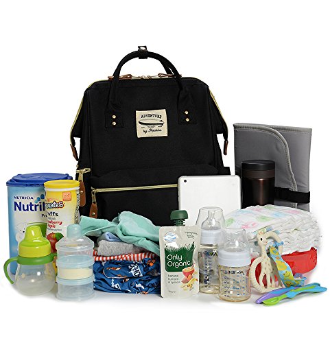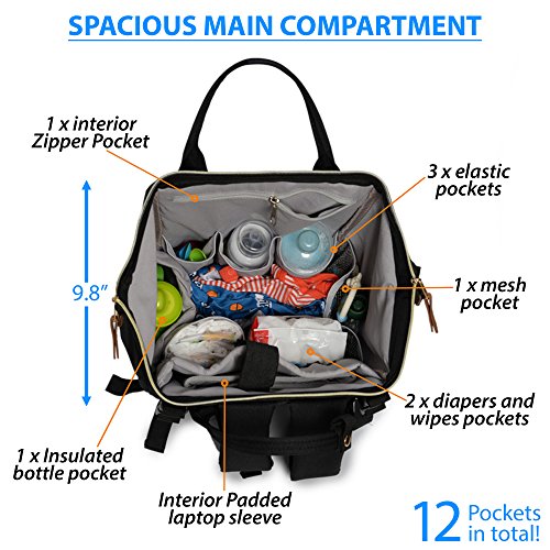 "LARGE INSERT DIAPER ORGANIZER": A smart 12 pockets (22L) diaper bag, equipped with integrated stroller straps, a side zippered pouch to store you phone, a side make up pocket, elasticized interior pouches including an insulated bottle pocket and a free changing pad.