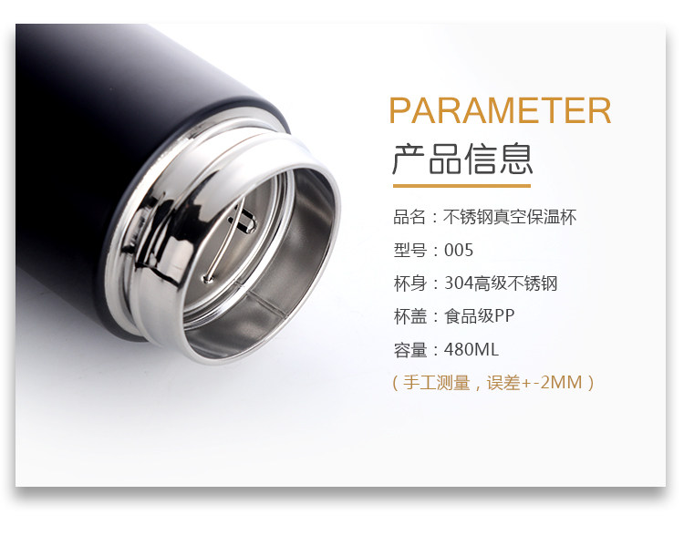304不锈钢保温杯 男女便携韩式商务直身杯 纯色真空隔热杯480ML