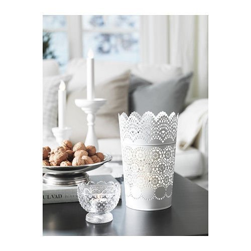-. Binding : Kitchen -. Brand : Ikea -. Color : White -. EAN : 0696734908516 -. Feature : SKURAR Lantern for block candle, white / Height: 22 cm /8.6 inches / Warm candlelight through the lace pattern on the lantern to produce decorative effect. / For massive candles, 8cm / 3.1 inch is. / Steel, polyester powder coating -. IsAutographed : 0 -. MPN : HM-00070 -. PackageQuantity : 1 -. PartNumber : HM-00070 -. ProductGroup : Home -. ProductTypeName : HOME -. Title : SKURAR Lantern for block candle, white by IKEA -. UPC : 696734908516