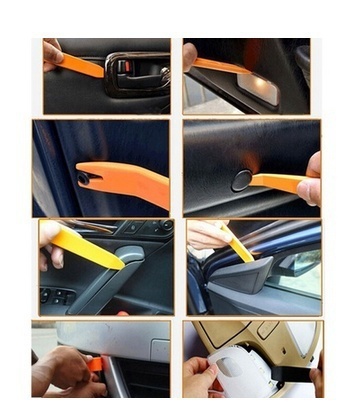 This tool kit comes with 4 unique plastic pry bars designed to help remove car audio electronics as well as interior and exterior trim, dash parts, and door panels without stratching or damaging your car