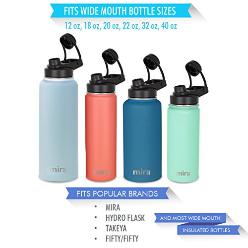 Product Description MIRA Spout Lid for Wide Mouth Water Bottles Compatible with Multiple Sizes: 12 oz, 18 oz, 20 oz, 22 oz, 32 oz 40 oz Fits Popular Brands: MIRA, Hydro Flask, Takeya, Fifty/Fifty and most wide mouth insulated bottles 0