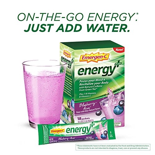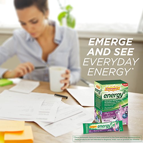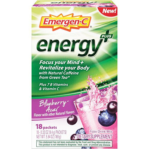 Emergen-C Energy+ Dietary Supplement Drink Mix with Caffeine, 0.33 Ounce Packets (Blueberry-Acai Flavor, 18 Count)