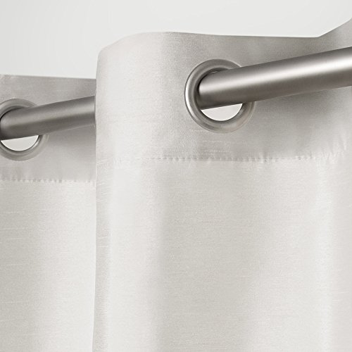 The Chateau faux silk grommet top window curtain panels are the perfect compliment to any decor. The gradient colored wide stripes provide a bold, yet artistic statement to your any window. These beautiful panels are the ultimate finishing touch to beautify any window setting in your home, apartment, office, business, and more. The Chateau drapery is constructed with gorgeous matte silver grommets, fitting the curtain rod of your choice up to 15/8 inch in diameter. Impress your friends, family, and guests with these window curtain panels on any windowFeature