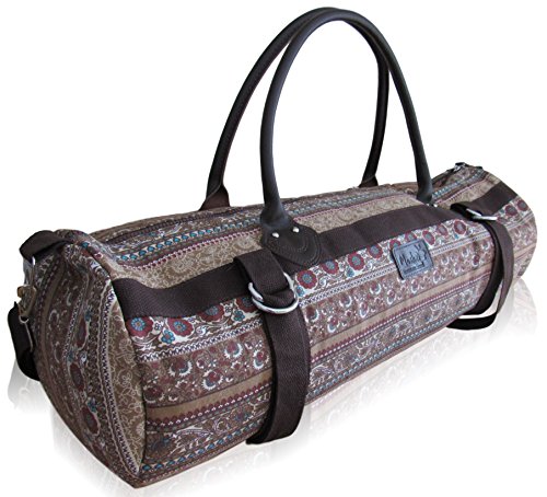 - LEATHER handles and accents make this Yoga Mat Carrier Bag functional and desirable, giving it a true Yoga Tote look. Leather is Vegan Friendly, man-made so none of our animal friends were harmed.