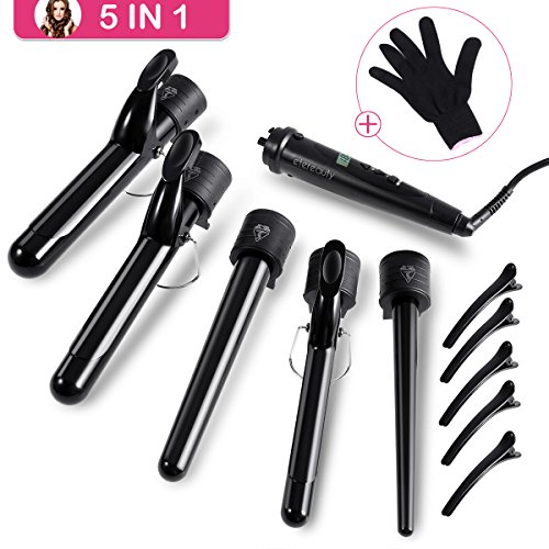 ETEREAUTY 5 in 1 Curling Iron Set with LCD Screen and Temperature Control and Heat Protective Glove