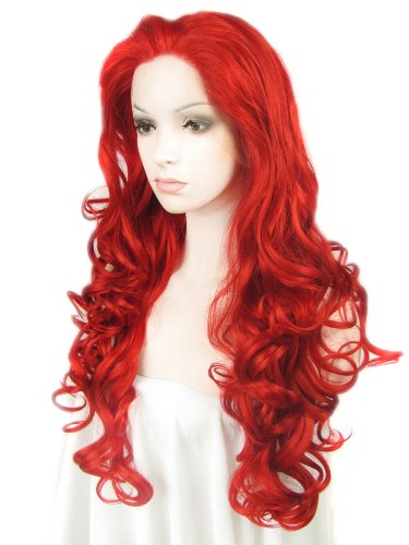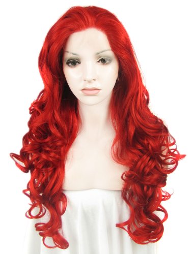 Imstyle Extra Long Wavy Wig Red Cosplay Heat Resistant Synthetic Lace Front Wig for Women Costume Cosplay