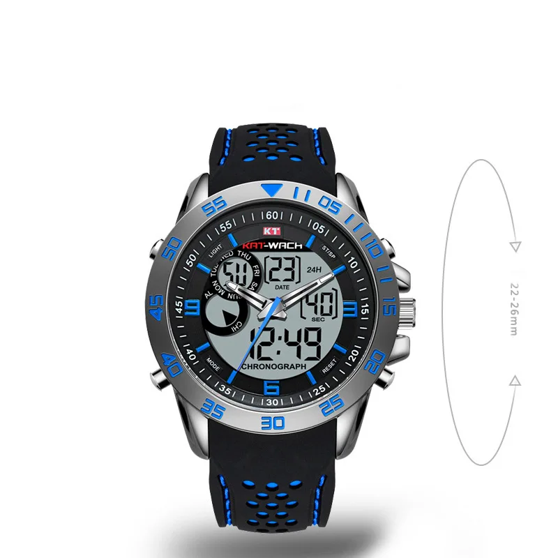 Feature:Complete Calendar,Stop Watch,LED display,Week Display,Water Resistant,Back Light,Chronograph,Multiple Time Zone,Alarm