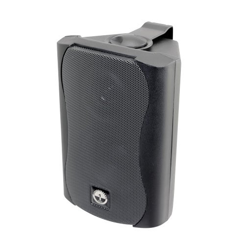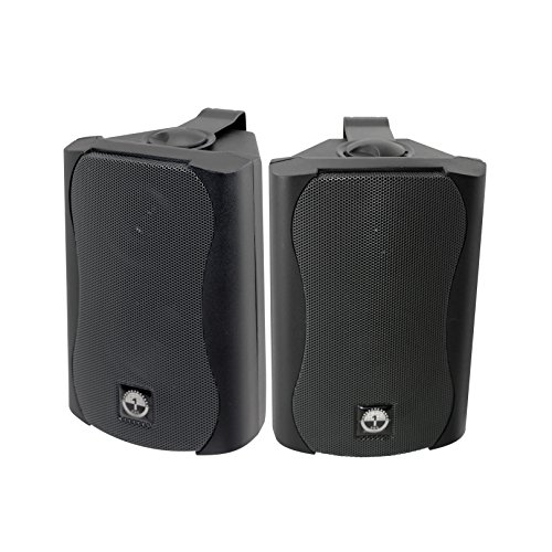 -. Feature : The perfect blend of great sound and price! / Includes two black 120 W peak power speakers with high output 3.5" (88.9mm) Mica cone foam edge woofer and precision.5" (13mm) PEI dome tweeter / Power: 120 Watts Peak Power, 30W RMS / Impedance: 8 Ohms; Frequency Response 75-22,000 HZ. / Size: 7.7" H x 5.1" W x 4.7" D (with bracket); For indoor use.