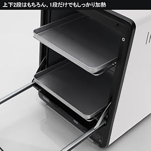 上下2段はもちろん、1段だけでもしっかり加熱可能