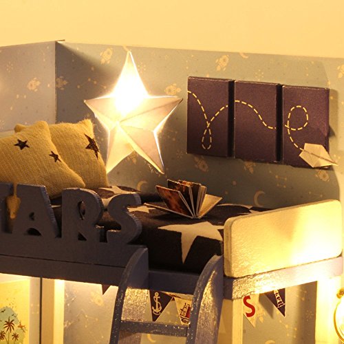 -. Binding : Toy -. Brand : Flever -. EAN : 7294325694706 -. Feature : Size6.73x5.15x5.15 inches Package included all the furnitures and accessories in the pictures,inluding the Dust Proof. / Glue and batteries are not included in the package because they are not permitted to ship by Air Transportation. So please prepare it by yourself. / Each steps has been clearly showed in the instruction with pictures to guide you how to DIY / It's very perfect gift for the Christmas.You could do it by yourself to make the gift more meaningful! / Note:The instruction is in Chinese,but you also could following the steps of the instruction with pictures.And electronic edition of English Instruction available,if you need English Instruction,please write to us! -. IsAdultProduct : 0 -. Label : Flever -. Manufacturer : Flever -. ProductGroup : Toy -. ProductTypeName : TOYS_AND_GAMES -. Publisher : Flever -. Studio : Flever -. Title : Flever Dollhouse Miniature DIY House Kit Creative Room With Furniture and Cover for Romantic Valentine's Gift(Adventure of Stars)