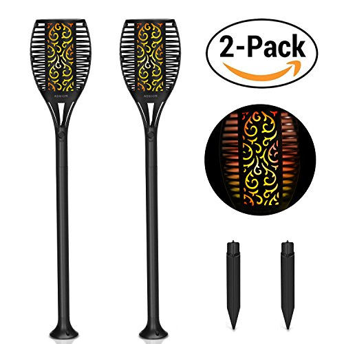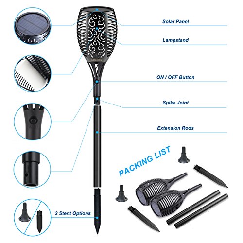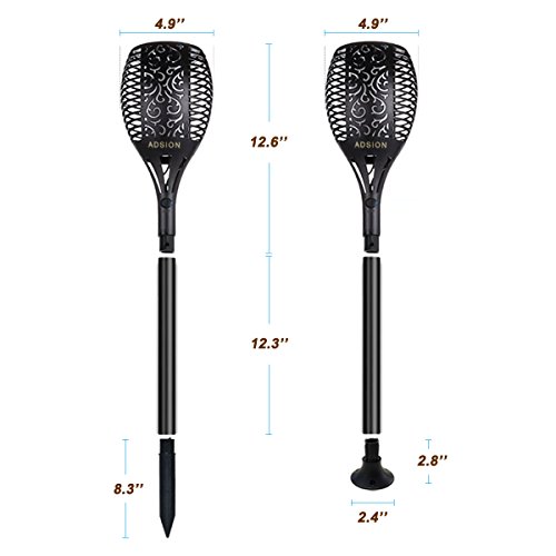 Solar Lights Outdoor, ADSION Landscape Lighting Waterproof Flickering Dancing Flames Torch Lights, 96 LED Tiki Torches for Outdoor Decorations Garden Patio Backyard Pathway(2 Pack)