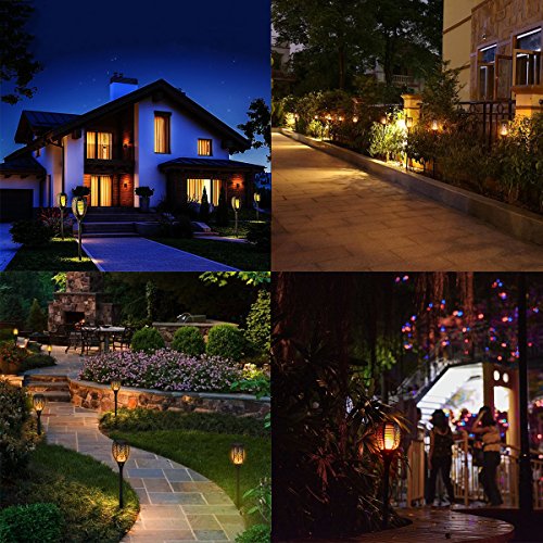 【Solar Powered & Waterproof】: The top of each flame torch light has a solar panel that will power the torch for 6-8 hours. To keep them working well, simply wipe off any dust or dirt from time to time. Each torch is also waterproof and can be left in the rain without worry.