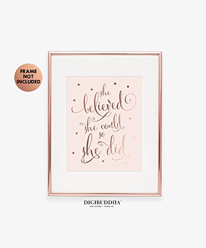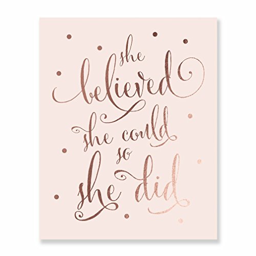 /// She Believed She Could So She Did /// Inspirational, Motivational. Our rose gold foil art prints are the perfect gift! Beautiful rose gold nursery decor, or fabulous pink bedroom decor. Contemporary rose gold wall art decor in shiny real foil.