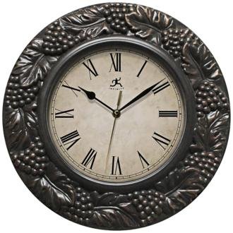 Infinity instruments Naples 13.5" Round clock has a grape design case that will appeal to wine lovers.