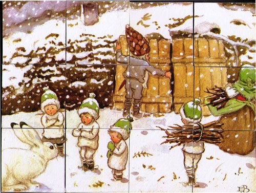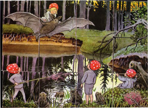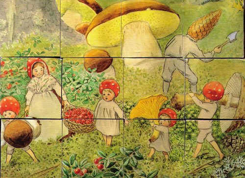 Studio : K. Hjelm Forlag Publisher : K. Hjelm Forlag Product Description Unique, illustrated cubes can be rotated to make six different puzzles, with the illustrations from 'Children of the Forest' by Elsa Beskow. These 12 block are perfect in developing hand and eye coordination and is appropriate for age 3 . Each wooden block is 1 ½ inches 0