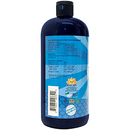 Studio : Bodhi Dog Publisher : Bodhi Dog Binding : Misc. Product Description Our premium nutrient-rich liquid fish oil is high in potency and purity to deliver a multitude of health benefits to young, mature, adult and old cats and dogs of all breeds and sizes including small, medium, and large size. Regular use of this oil helps reduces excessive shedding and relieve dry, itchy skin due to its anti-inflammatory properties. To use, add the appropriate amount to your pet's food. Dogs up to 25 lbs: 1/2 teaspoon, Dogs 25 - 50 lbs: 1 teaspoon, Dogs 50 lbs: 1 1/2 teaspoon, and all cats: 1/4 teaspoon. Ingredients: Alaskan Pollock Oil, Non-GMO Natural Mixed Tocopherols - which are a family of vitamin E compounds naturally found in vegetable oils, nuts, fish and leafy green vegetables that have proven dietary importance. We are a small family owned business committed to your full satisfaction, LOVE OUR FISH OIL OR GET YOUR MONEY BACK! We are committed to the planet as much as we are you and your pet's happiness. Our fish oil and packaging are made using the most socially responsible and eco-friendly methods available right here in the USA. Bodhi dog products are the CONSCIENTIOUS AND SOCIALLY RESPONSIBLE PET OWNER'S CHOICE! MADE IN THE USA 0