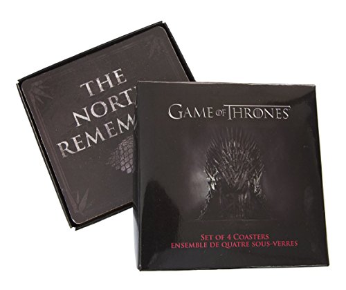 -. Brand : Game of Thrones -. Feature : Includes: 4 Pack Of Cork-Back Coasters / Dimensions: : 3 3/4" by 3 3/4" / Comes in a Game of Thrones Gift Box / Officially Licensed HBO Product / Great For A Game of Thrones Viewing Party or Gift! -. ProductGroup : Kitchen -. ProductTypeName : KITCHEN -. Title : Game of Thrones Cork-Back Coaster Set, Multicolored