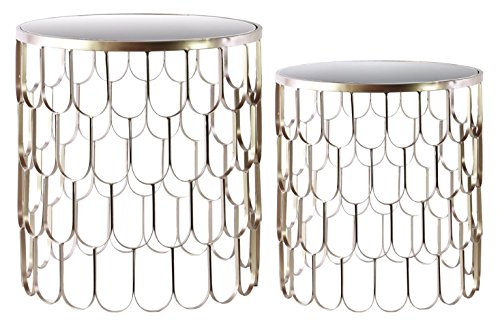 Benzara Metal Nesting Accent Table with Teardrop Design Set of Two-Gold