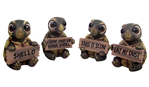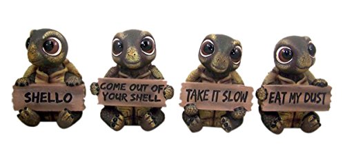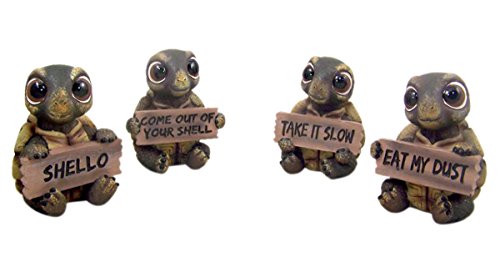Set of 4 Turtle Home Decor Statues with Decorative Signs, 3 1/4 Inch