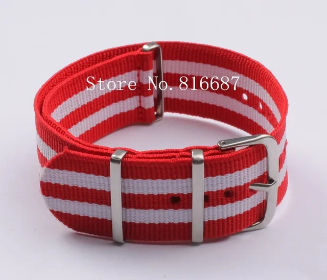 뜨거운 판매! 1 개 고품질 24 미리메터 & 3red-2white 및 나일론 시계 밴드 스트랩 방수 시계 스트랩