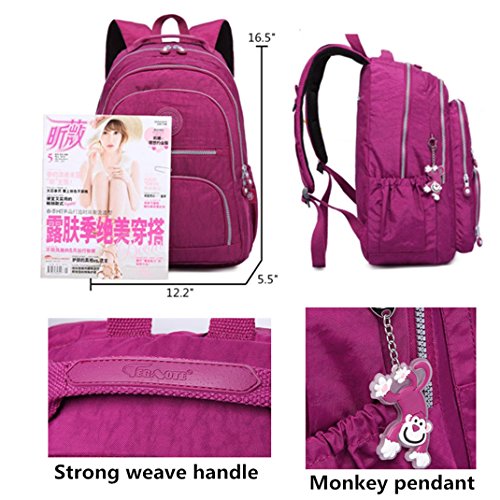 -. Feature : WATER RESISTANT and HIGH QUALITY: Durable stylish nylon exterior will last for years. Thick canvas-like shoulder and carry straps are attached with extra stitching to carry heavy loads without worry. Soft interior lining adds a touch of luxury / COMFORTABLE: Lightweight backpack-style purse evenly distributes weight on both shoulders. Ideal for reducing back pain you have when you carry a normal purse. Adjustable shoulder straps fit everyone. Padded back for comfort. Padded bottom to protect your valuables. / Multi Pockets: 5 zippered pocket outside, 2 side pockets for bottle and umbrella, 1 rear zippered pocket. It not only increase the capacity of the bag, but also convenient for you to access good. / Size: 12.2x5.5x16.5 inches(LxWxH), Weight:0.85LB, Lightweight, Holds laptop up to 13inches, Comfortably holds an iPad Air, mobile phone, wallet, cosmetic, umbrella and other small things. / Perfect for using in office, school, travel or any other daily occasions. Super great backpack for girls and women, Also as a stylish Diaper Backpack for Dad or Mum.