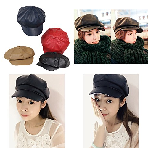 -. Binding : Apparel -. Brand : Bigood -. ClothingSize : 55cm -. Department : womens -. Feature : Material:PU leather / Size:55cm / A perfect accessory in spring, summer, autumn & winter. / keeps you warm and looking good in the cold weather / Soft and fashionable, sweet and comfortable -. ProductGroup : Apparel -. ProductTypeName : HAT -. Size : 55cm -. Title : Bigood Unisex Fashion Newsboy cap Leather Baseball Cap Sport Outdoor Hat