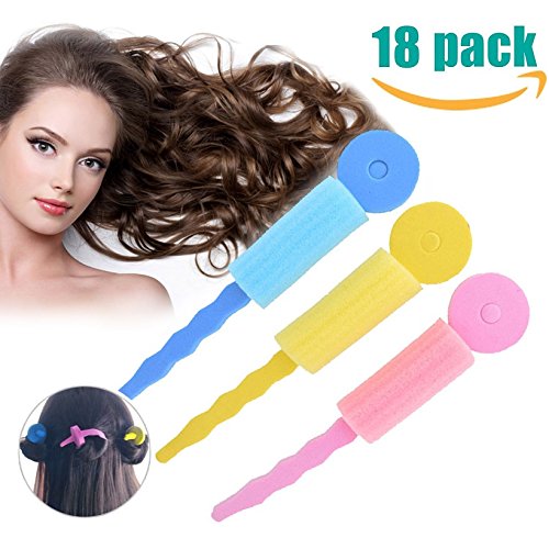 Flexible Foam Sponge Pillow Soft Sleep In Hair Curler Rollers - 18 Pack. For wavy, tight, spiral curls for thick & thin hair. Includes 60 Black Conair Bobby Pins.