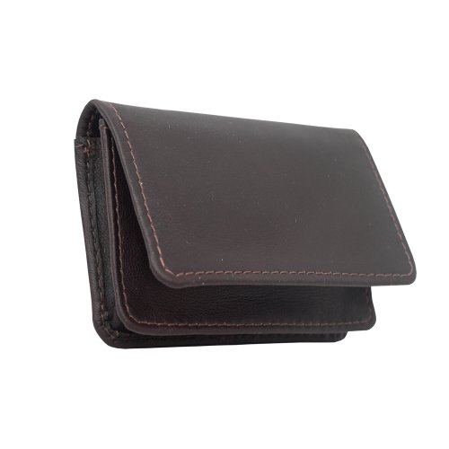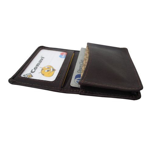 Flap-over to gusseted pocket for credit cards and/or business cards, open pocket, and i.d. Window. Additional open pocket for cards on the back. Fits up to 50 cards.