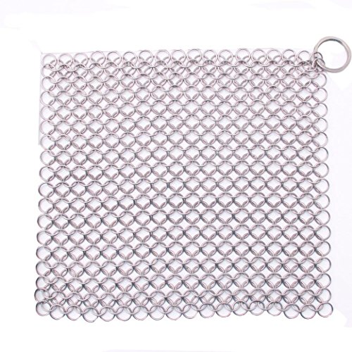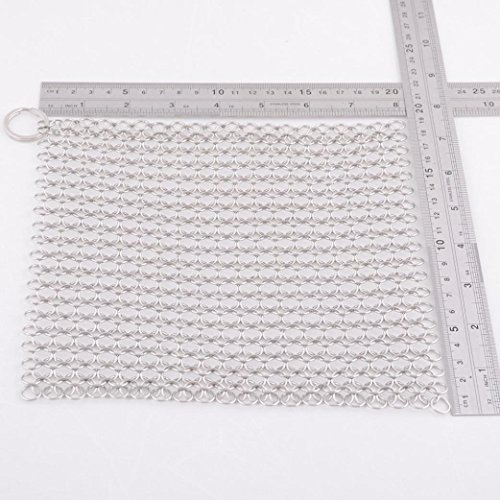 -. Feature : Material:316 Grade Stainless Steel / Sinze:7*7",Each Ring Hand Formed for Smoothness,Strength and Comfort. / he Small Ring Chainmail Scrubber - Makes Cookware Cleanup Quick and Easy / Will Not Scratch Your Pans. Keeps Your Cast Iron Seasoned, / Stainless Steel Cookware items like a baking sheet, tea pot, cookie sheet, cauldron, tortilla press, hibachi, cornbread, pie pan and more! Lightweight, and convenient for home,camping or travel.