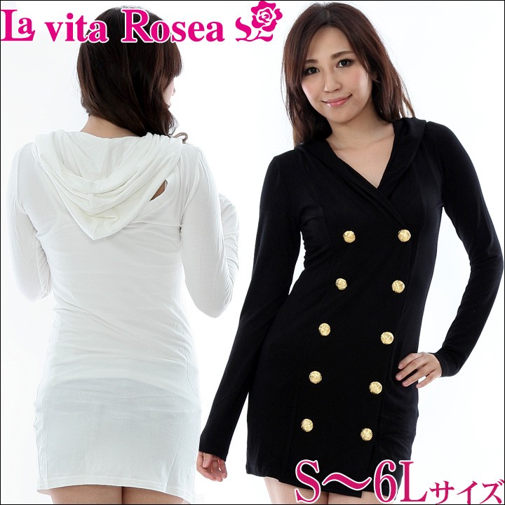 フード付ダブルボタンワンピース(SA) 大きいサイズ 春 セクシー レディース ギャル服 ギャル 大人 13号 15号 17号 19号 LL 2L 3L 4L 5L 6L 6L