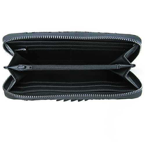 Product DescriptionMaterial: Synthetic Leather, Polyester Dimensions: 20 x 3 x 10 cm on the inside there is a large zippered compartment for coins Inside with two large compartments for bills 8 card slots 0