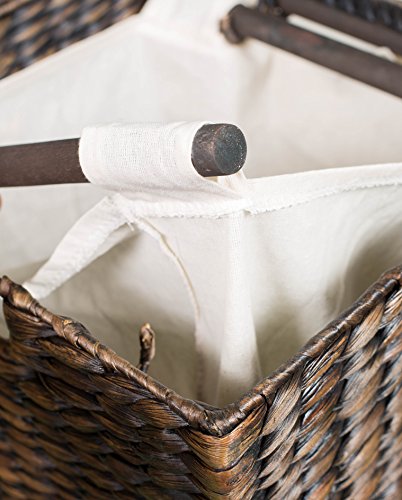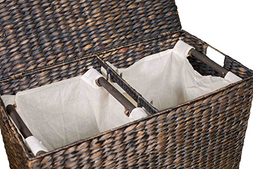 Studio : BirdRock Home Publisher : BirdRock Home Product Description Keep your laundry neat and organized with the BirdRock Home Water Hyacinth Laundry Hamper with Divided Interior and Removable Cotton Liners. This compact hamper allows you to separate light and dark clothes as you place them in the hamper. Easily remove the interior cotton liners for transport to washing machine. The water hyacinth weaving adds a beautiful, natural touch to any bedroom, closet or laundry room. 0