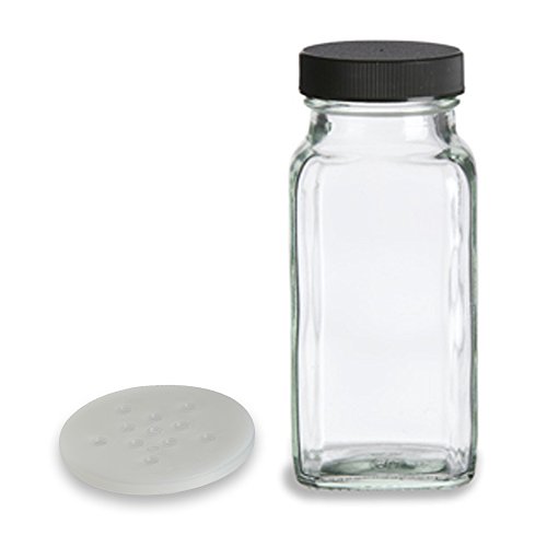 - 6 - 6 ounce Glass Spice Shaker Jars with Lids and Shaker Inserts