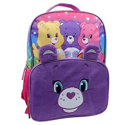-. Feature : Genuine Licensed / 2 Side Mesh Pockets/Main Compartment Zipper / Adjustable Strap / W 12" x 16"h x 6" D / Front Zipper With Care Bear Ears and a Velvety Texture
