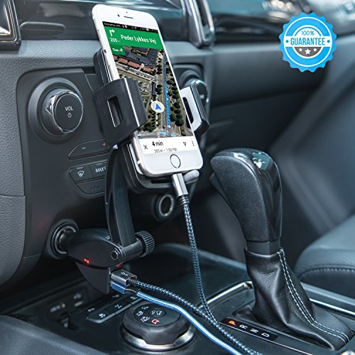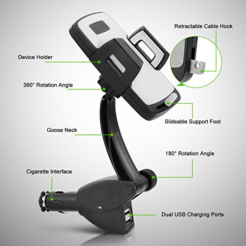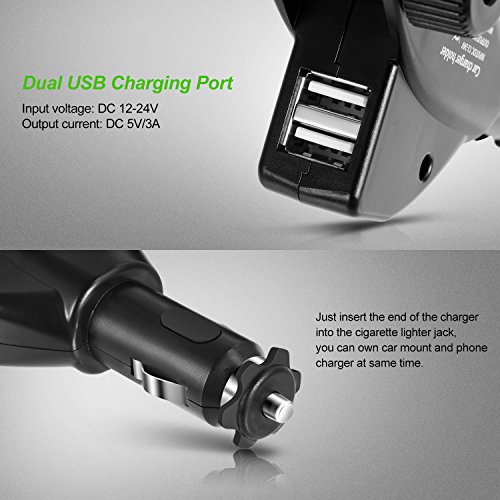 【Unique 3-in-1 Design】 - Designed with car mount holder and dual USB charging ports and cigarette lighter power adapter into one. You can get your devices charged while your phone can be supported by the holder cradle.