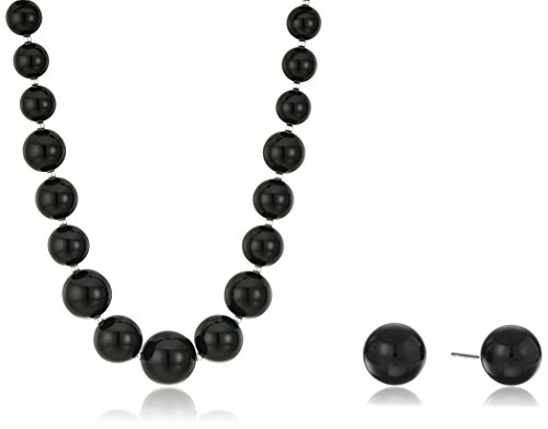-. Title : Sterling Silver Black Onyx Bead Necklace and Earrings Jewelry Set, 19"